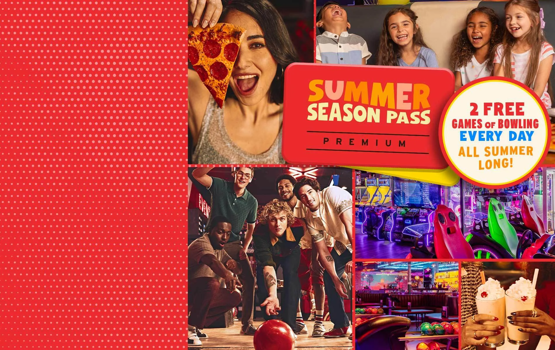 Make the most of summer with the Summer Season Pass, your all-access pass to fun with 2 free games of bowling daily, free shoe rental and more exciting perks!